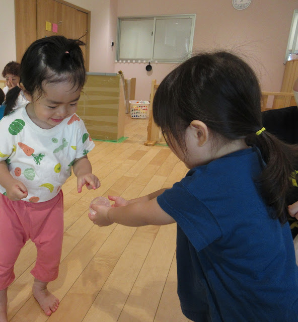 風船を剥いてみたりお友達と「冷たい!」し合ったり😊